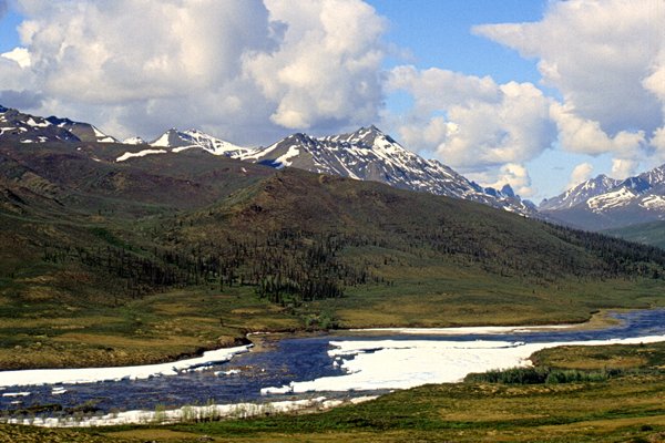 Om 7 uur vertrekken we uit Dawson richting Inuvik. We gaan over de Dempster Highway en omdat het een slechte zandweg is, moeten we bagage achterlaten om het gewicht te beperken. Om 8 uur laten we de overtollige ballast achter in de buurt van de Klondike River Lodge. Deze bagage wordt gewoon aan de kant van de weg neergezet, er gaat een dekzeil overheen en Giovanni verzekert ons dat die bagage er nog steeds ligt als we over een paar dagen terugkeren. Voor ons Nederlanders een onwaarschijnlijk verhaal, ook toen in 1988, laat staan nu.