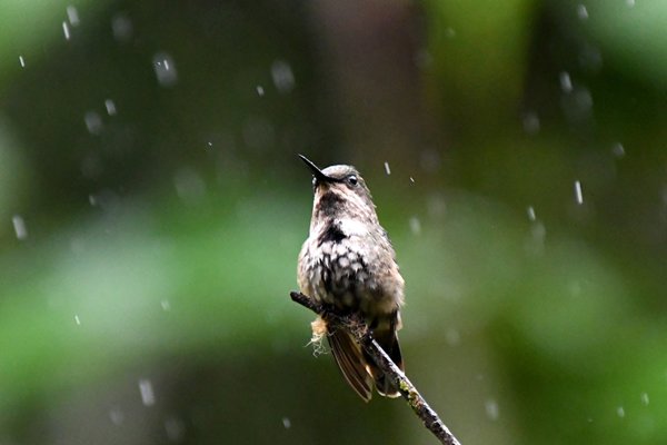 Het regent vandaag (17 september 2024) hard en constant. Dat is voor deze kolkibriedag minder erg dan verwacht, want we kunnen overdekt staan en de kolibries trekken zich er niets van aan. De plek (Sítio Folha Seca) ligt in de buurt van Ubatuba en wordt door bezoekers meestal Jonas' Place genoemd.