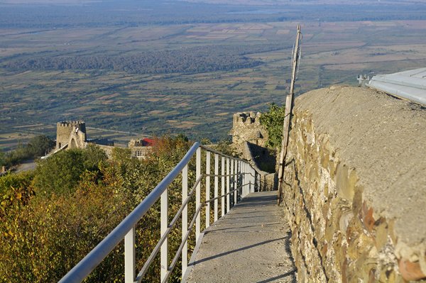 We gaan verder richting Sighnaghi waar we overnachten. Sighnaghi zien we al vanuit de verte liggen: bovenop een vlakke heuveltop ligt het dorpje uitgespreid met uitzicht over de platte vallei eronder.