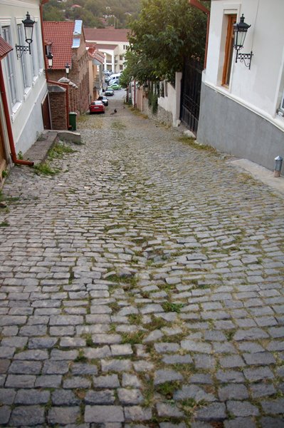 Het stadje is helemaal in oude stijl opgeknapt en oogt bijzonder vriendelijk. Verder staat het in het teken van de wijn, want Kakheti is beroemd om zijn wijnen. Bij ons hotel persen ze de nieuwe oogst druiven. Een man staat in een grote houten bak de druiven met laarzen aan fijn te trappen, terwijl een ander het vocht opvangt.