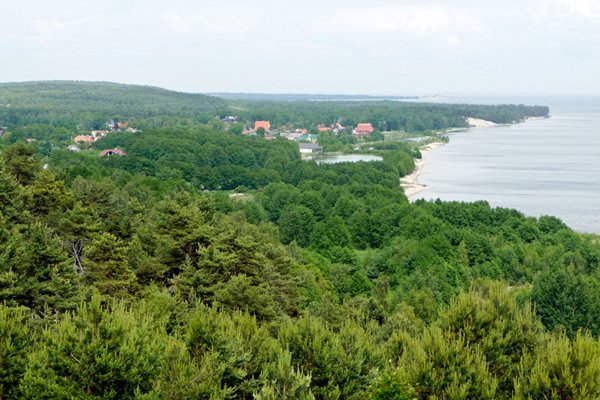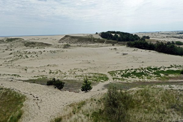 De volgende dag rijden we via de (Curonian Spit in het Engels, Kurische Nehrung in het Duits en Kurshsaya Kosa in het Russisch) naar Litouwen. De Spit is een lange smalle landtong van zo'n 100 km die langs de kust van Kaliningrad en Litouwen loopt en de Curonian Lagoon van de Baltische Zee scheidt. Je vindt er hoge duinen en zowel naaldbos als loofbos. We hebben vandaag lunch voor onderweg mee, dus we hebben alle tijd om stops te maken. In het dorpje Lesnoy (vroeger Sarkau) zien we ontzettend grote villa's gemaakt van ronde houten stammen. Aangezien het park op de Werelderfgoedlijst van Unesco staat, mag er helemaal niet gebouwd worden, maar voor rijke Russen met voldoende smeergeld gaan altijd wel deuren open.
