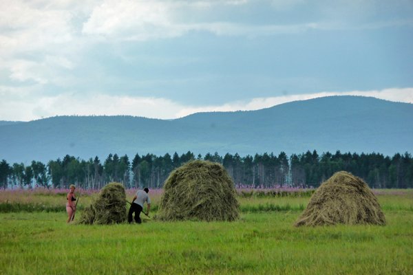 Het eerste stuk naar Nizjni Udinsk is nog goed, maar dan komen we over slechte stukken weg die niet verhard zijn en bestaan uit grindwegen met grof grind of stukken met een soort leem als ondergrond waarin diepe sporen lopen en waar diverse vrachtwagens in vastlopen. Het is voor ons een onvoorstelbaar gezicht. Grote vrachtwagens ploeteren omhoog de helling op en rijden zich vast in de diepe sporen of rijden omlaag de helling af. Vastgelopen vrachtwagens worden door een sterke wegwerkmachine weer vlot getrokken. De vrachtwagen worden aan alle kanten gepasseerd door personenauto's die het volstrekt overbodig vinden om op ze te wachten. In al dat gekrioel staan midden op de weg twee wegwerkers te werken alsof en geen auto te bekennen is. Ze rollen hun rolmaat uit en een auto rijdt gewoon over het meetlint heen.