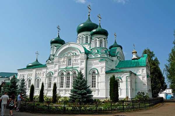 Onderweg naar Kazan zien we een bord naar een klooster en veel mensen die die kant opgaan. We gaan ook een kijkje nemen. Er staan prachtige kerken met mooi aangelegde tuinen, er is een heilige bron en je kunt op de foto met beren (al zijn ze van hout).