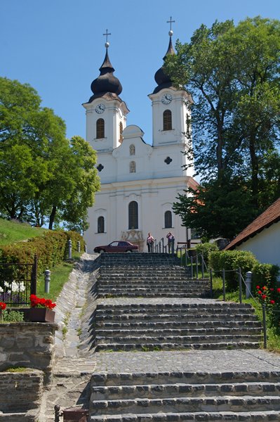Op Tihany bekijken we eerst de kerk die hoog op een heuvel staat en die je heel goed vanuit Balatonfüred kan zien. ‘s Avonds is hij mooi verlicht. Bij de kerk is het gigantisch druk met schoolreisjes en souvenirstalletjes.