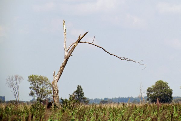 De volgende dag rijden we door het Narew park en de Biebrza moerassen. Allebei natte parken. Het Narew park ligt min of meer om de bovenloop van de Narew rivier heen en bestaat uit het dal van de rivier met de moeraslanden en de uiterwaarden. Midden in het park loopt een brug dwars door het park over de rivier tussen de plaatsjes Waniewo en Sliwno die elk aan een verschillende kant van de Narew liggen. Die brug gaan we over. Soms moet je een pontje over. Het pontje haal je met een ketting naar je toe en met een touw dat over een katrol loopt, kan je vervolgens overvaren. De loopbrug loopt dwars door het gebied en geeft daardoor een goed overzicht van het park. Eigenlijk zou je hier met een bootje moeten varen, maar dat gaat niet als je nog zoveel andere dingen wilt doen. Op vogelgebied is het gezien de tijd van het jaar rustig. Wel zien we nog veel bloeiende planten, zoals moeraswederik, smeerwortel, kattenstaart, bitterzoet – met rode besjes en bloemen, – en een hele grote boterbloem met stijve bladeren. Vlinders zijn er in overvloed, maar we zien nog veel meer libellen. Volgens het informatiebord zijn er 36 soorten libellen in het park.