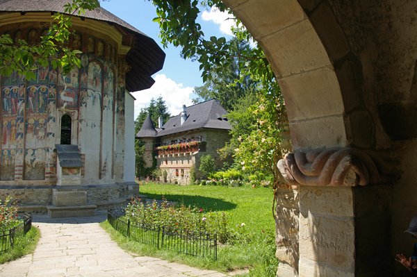 Van Humor gaan we verder door naar de kloosters van Moldovita en van Sucevita. Ook allebei prachtige kloosters. Moldovita is een tamelijk lange kerk met nissen, een achthoekige toren en fraaie buitenschilderingen. In de muur om de kerk heen staan drie torens.