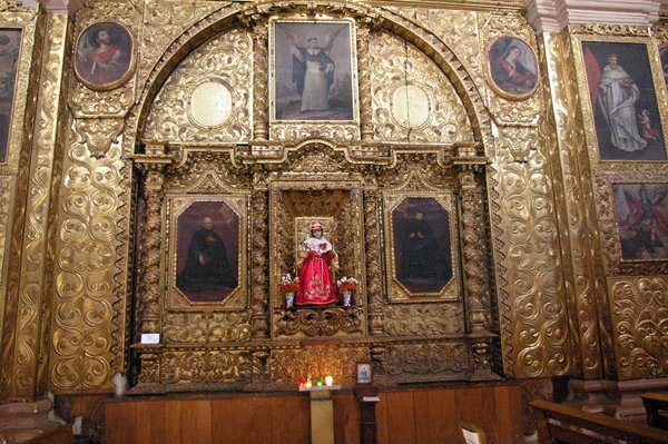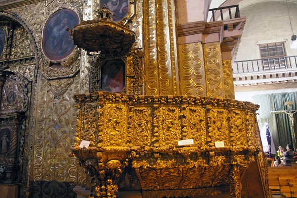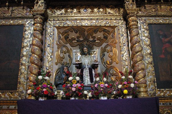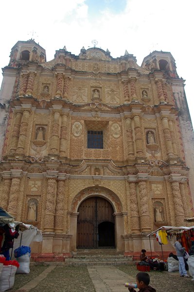 San Cristóbal de las Casas is een leuke stad. De stad heeft nog veel koloniale gebouwen, maar is ook duidelijk een stad van de Maya's. Voor we met de excursie vertrekken, lopen we naar de Santo Domingo kerk die een prachtige, barokke façade heeft. De muren zijn van voor tot achter met goudblad bedekt. De preekstoel van hout met bladgoud is fraai bewerkt en er staat een allerliefst beeldje van een heilige met een roodachtige jurk aan.