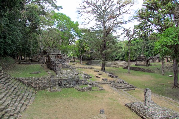 Foto: overzicht van een aantal ruïnes in Yaxchilán.