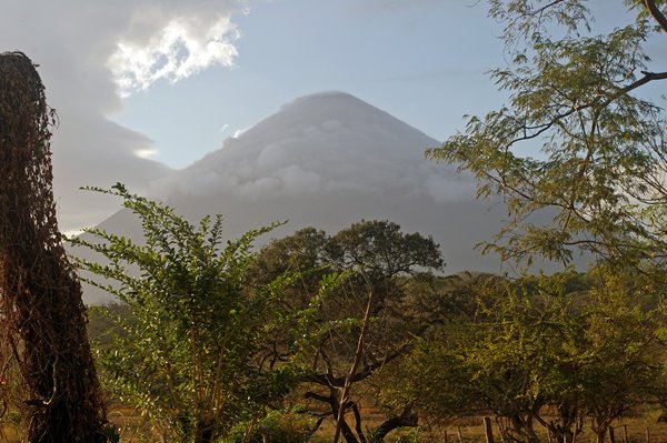 Foto: het strand langs het Nicaragua meer tijdens de wandeling. De Concepción vulkaan is weer te zien.