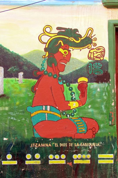 Laatste stad langs de Ruta de las Flores die we aandoen is Ahuachapan. In Ahuachapan zijn ook muurschilderingen. Het belangrijkste plein daar heet Plaza de la Concordia. In het verleden bestond er een vete tussen twee families. Om te vieren dat ze de vete bijgelegd hadden, bouwden ze samen een soort koepel met klok op het plein en sindsdien heet het plein Plaza de la Concordia (eendracht, eensgezindheid). We kunnen het plein maar moeilijk bereiken. De straten zijn afgezet. Opnieuw laat de politie zich van haar beste kant zien. Omdat Alfredo twee toeristen bij zich heeft, mag hij langs de afzetting en onder het wakend oog van de agenten, parkeren. Alfredo vraagt ze goed op de auto met onze bagage te letten en ook dat belooft oom agent.