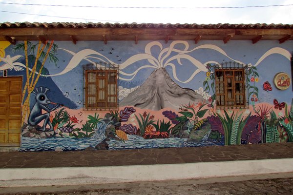 Ataco is beroemd om zijn vele, vrolijke en kleurige muurschilderingen over van alles en nog wat. Er is er ook een van kinderen op een hinkelbaan. In de vakjes staan geen getallen, maar kreten als 'voed me', ‘kleed me’ en aan het eind staat ‘ik ben de toekomst, een toekomst die beter kan zijn’.