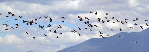 Black-bellied whistling ducks (zwartbuikfluiteend) in vlucht
