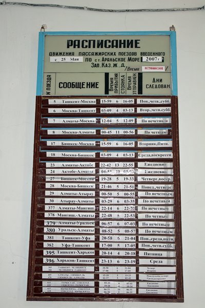 In Almaty kon Sacha de treinkaartjes nog niet regelen, dus dat moet nu zodra we in Aral aankomen.