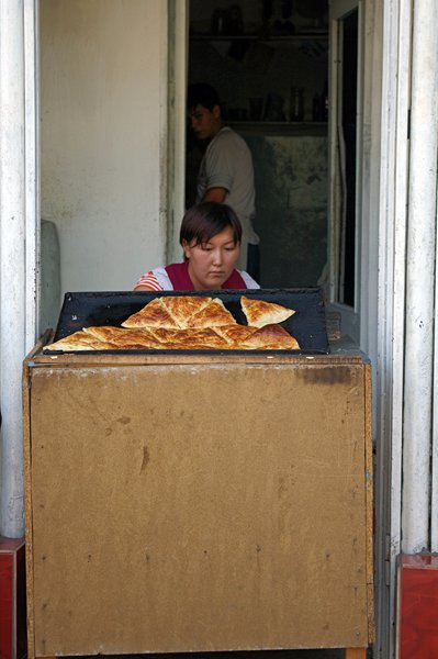 Vroeg vertrek, omdat we het park willen halen. Onderweg stoppen we in Taraz (= Dzhambul). Taraz in een grote plaats met een drukke markt. Na de boodschappen gaan we wat rondkijken op de markt waar het heel druk en heel warm is.