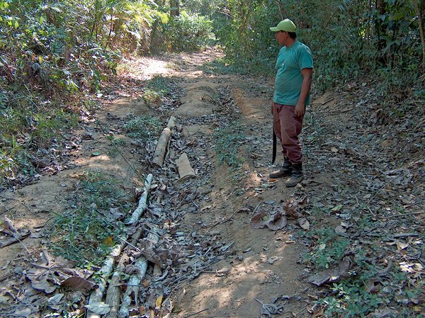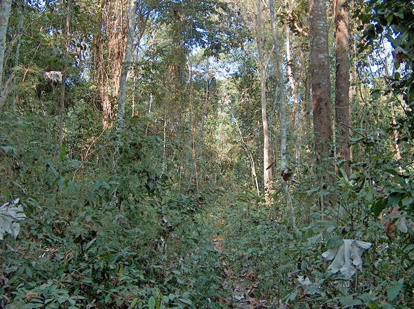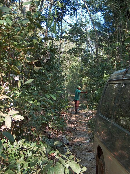 Vandaag gaan we eerst met het busje, en daarna lopend naar de waterval. We maken een prachtige wandeling door, voorzover het te beoordelen is, primair bos. Vicente vertelt onderweg veel over bomen en planten, en wijst sporen van de poema aan.