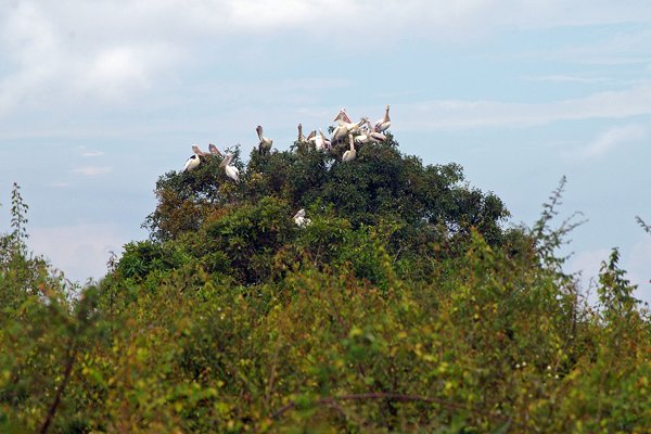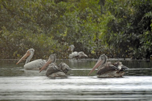 De volgende ochtend staan we om half zes klaar om naar de vogelkolonie te gaan. Daar nestelen verschillende soorten vogels, alhoewel we nu nog te vroeg in het seizoen zijn en nog niet iedereen terug is. Gelukkig zijn we geen echte vogelaars en dus zijn we tevreden met alles wat er nu wel is en dat is al heel wat. 's Nachts heeft het flink geregend en ook als we weg willen, regent het nog. We staan te wachten op een kleine motorboot, kleiner dan waar we gisteren mee gevaren hebben, maar al wie er komt, geen bootsman. Kunthea, onze supergids, belt hem. Hij is vanwege de regen maar niet gekomen, omdat hij dacht dat wij niet wilden in de regen. Na aandringen van Kunthea komt hij dan toch maar.