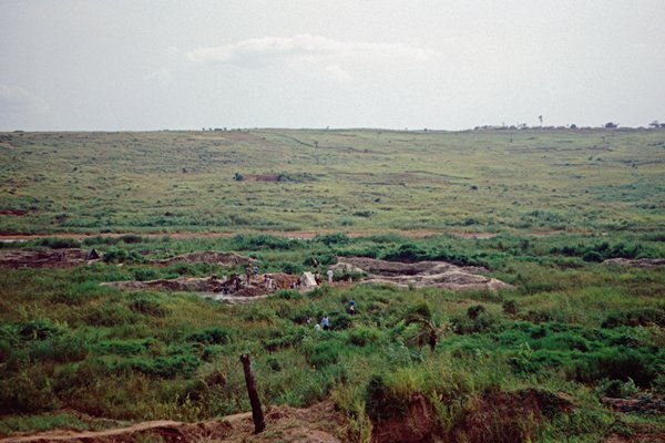 Foto: omgeving Mbuji-Mayi, met kleinschalige goud- of diamantwinning.